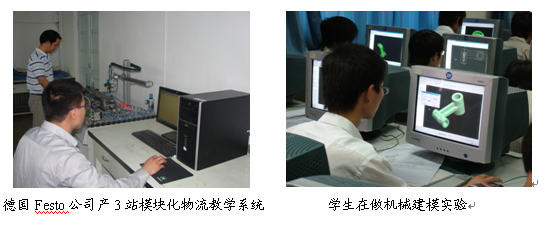 其它的先进仪器设备有:德国Festo公司产3站模块化物流教学系统;ET2000发动机自动测控系统;AVL Dicom 4000汽、柴油车两用排放分析仪;DEWE-800燃烧分析仪;CDM-1000A汽车底盘测功系统;快速成型教学系统;半自动吸塑机;三维数字化扫描仪。