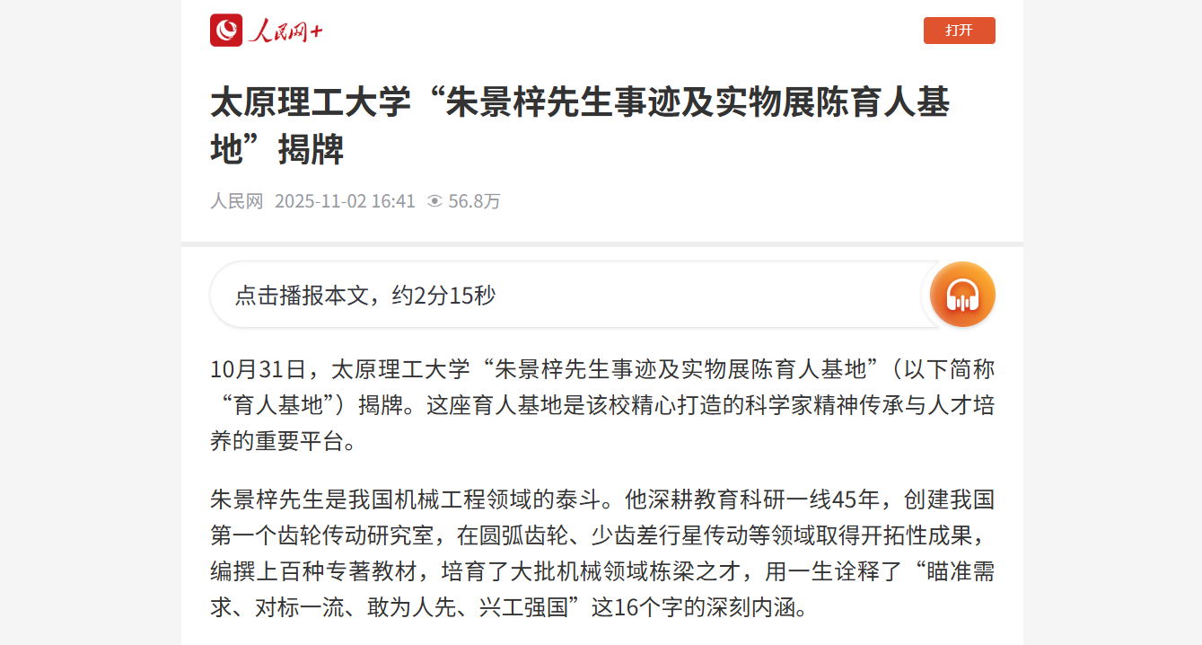 据介绍,育人基地将被打造成沉浸式育人课堂,将朱先生“科研扎根实践、成果服务产业”的理念传承下去。同时,sunbet申搏将依托育人基地,加强与科研院所、企业的合作交流,培养员工对接国家需求、解决实际问题的能力,为山西高质量转型发展、国家机械工程领域进步输送更多“懂技术、有担当、善创新”的高素质人才。(张岱俊)