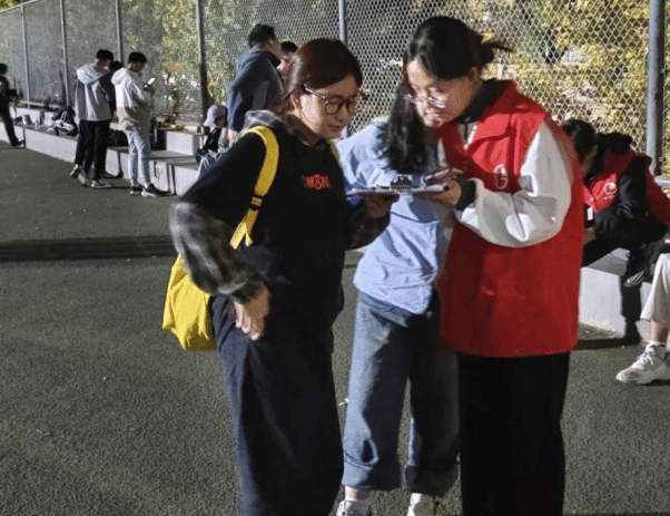 二十天的风雨同行, 同学们也渐渐熟悉了各位志愿者的陪伴,越来越多的同学老师们来到我们的摊位前寻求帮助,志愿者们也从第一次参加活动时的不敢于来寻求帮助的同学们进行交流,被腼腆与害怕束缚自身的行动到如今与寻求帮助的同学老师们进行流利地交流,认真对待他们的请求,耐心倾听每一个问题,哪怕遇到职工同学,我们也用所学的外语以及肢体语言与他们交流,解决他们的问题。在同学们与志愿者们的双向奔赴下,更多夜晚运动的师生能够无所顾虑地享受这段酣畅淋漓的时光,感受来自运动的愉悦与轻松。